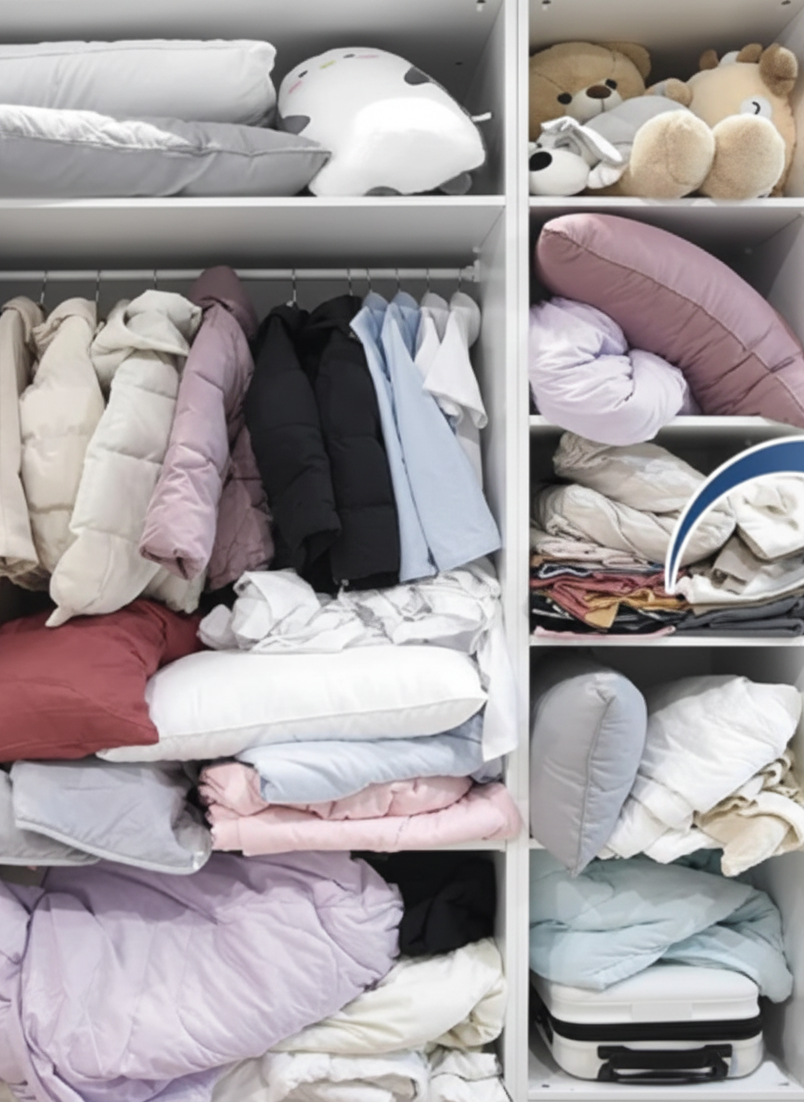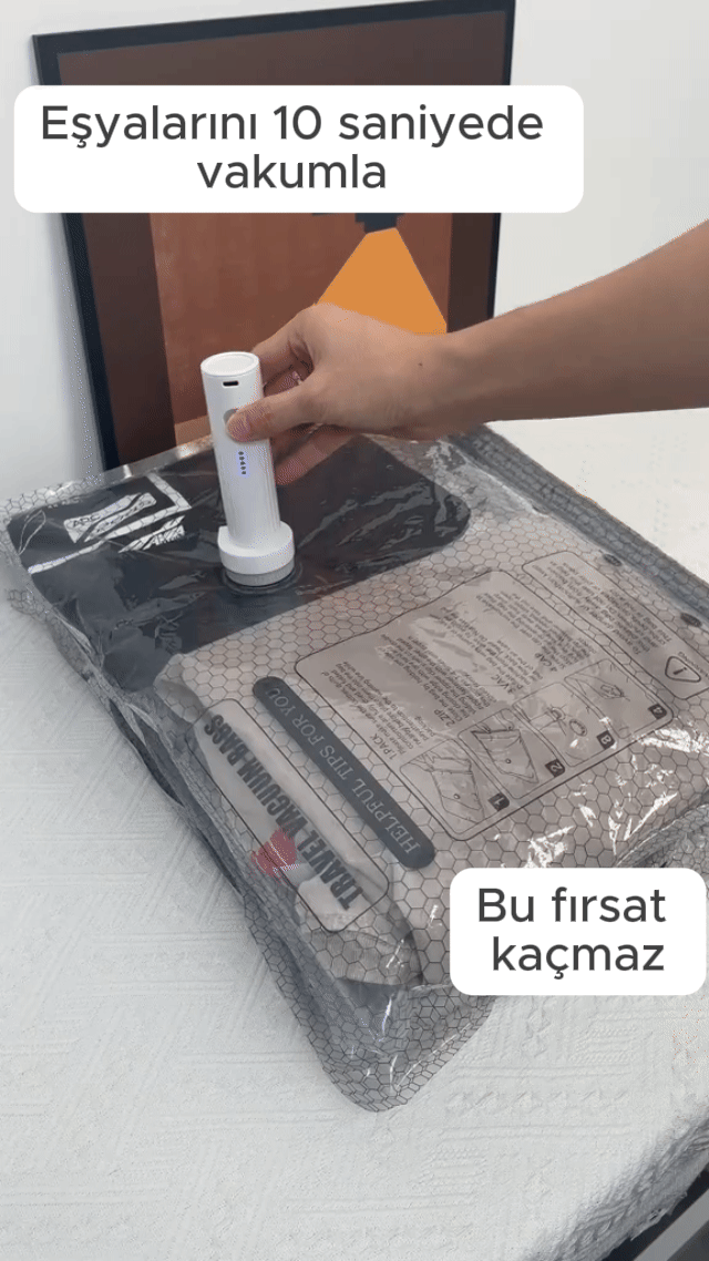 Eşyalarınızı düzenlemek hiç bu kadar pratik olmamıştı! Elora vakum sistemi, sadece birkaç basit adımla karmaşayı ortadan kaldırır. Tek tuşla vakumlama rahatlığı sayesinde, dakikalar içinde daha düzenli bir alana ve güvende eşyalara sahip olun.